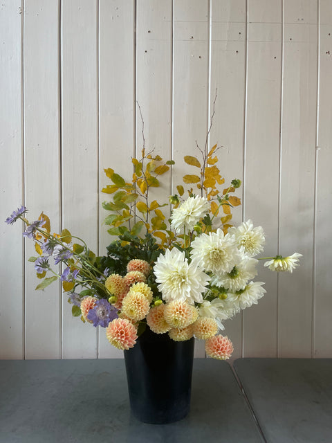 We do event flowers, arrangements, installations, floristry workshops and weekly subscriptions of bucket deliveries to London.